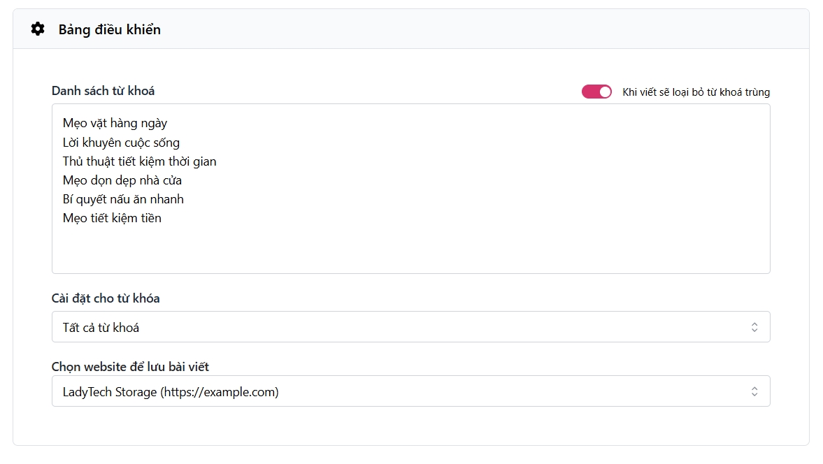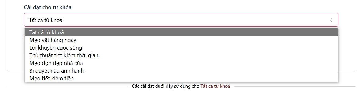 If you do not want to apply the "All keywords" setting, select the specific keyword. In this case, all the features below will apply only to this keyword.