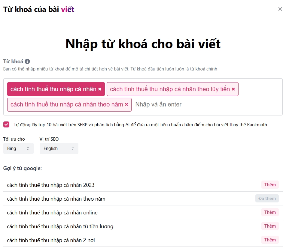 A window will appear allowing you to enter keywords based on Google’s suggestions.