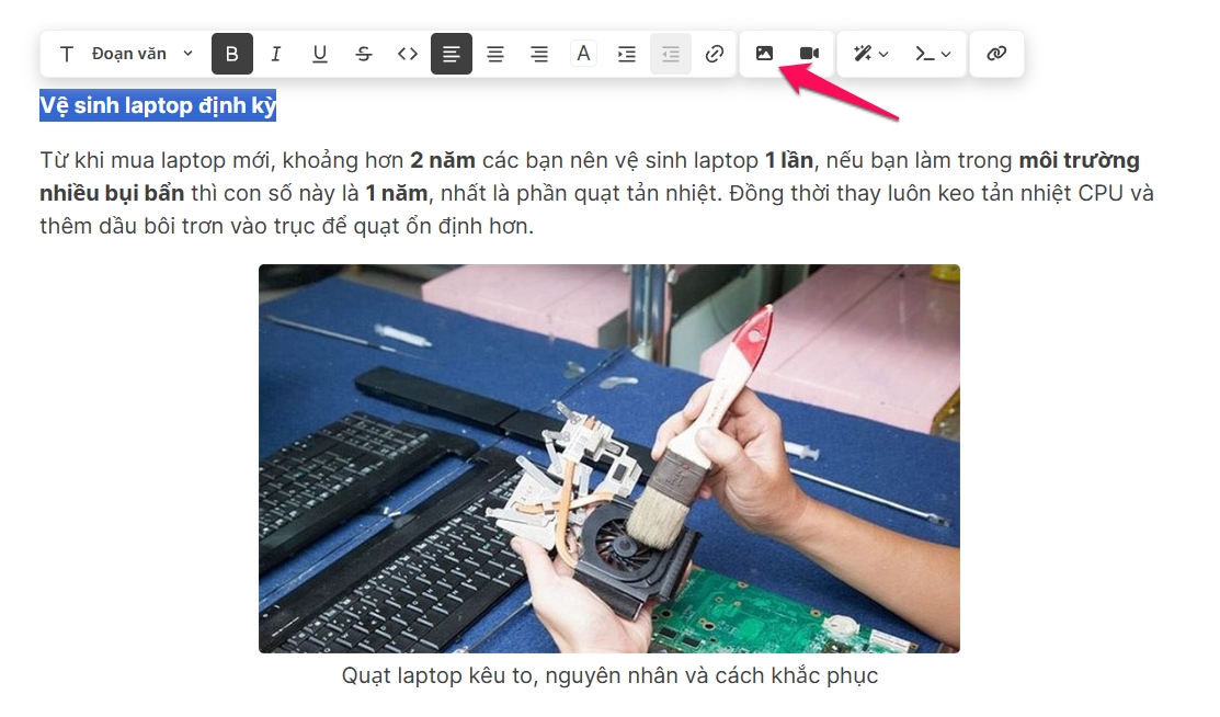 Một danh sách hình ảnh được hiển thị ở bên thanh sidebar, bạn nhấp vào hình ảnh để tự động thêm vào trình chỉnh sửa nội dung