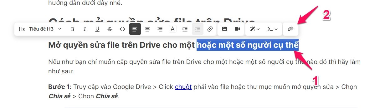Bôi đen từ cần chèn internal link rồi chọn Tìm internal link như hình ảnh minh hoạ bên dưới