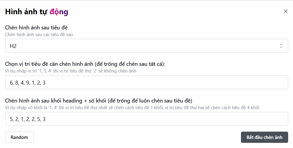 This method will search for images based on the main keyword or title to retrieve images, then sequentially insert the images into the selected heading positions.