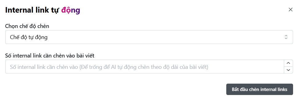Automatic mode: You just need to enter the number of internal links to insert, and the system will automatically search for relevant keywords and insert the appropriate internal links for those keywords.