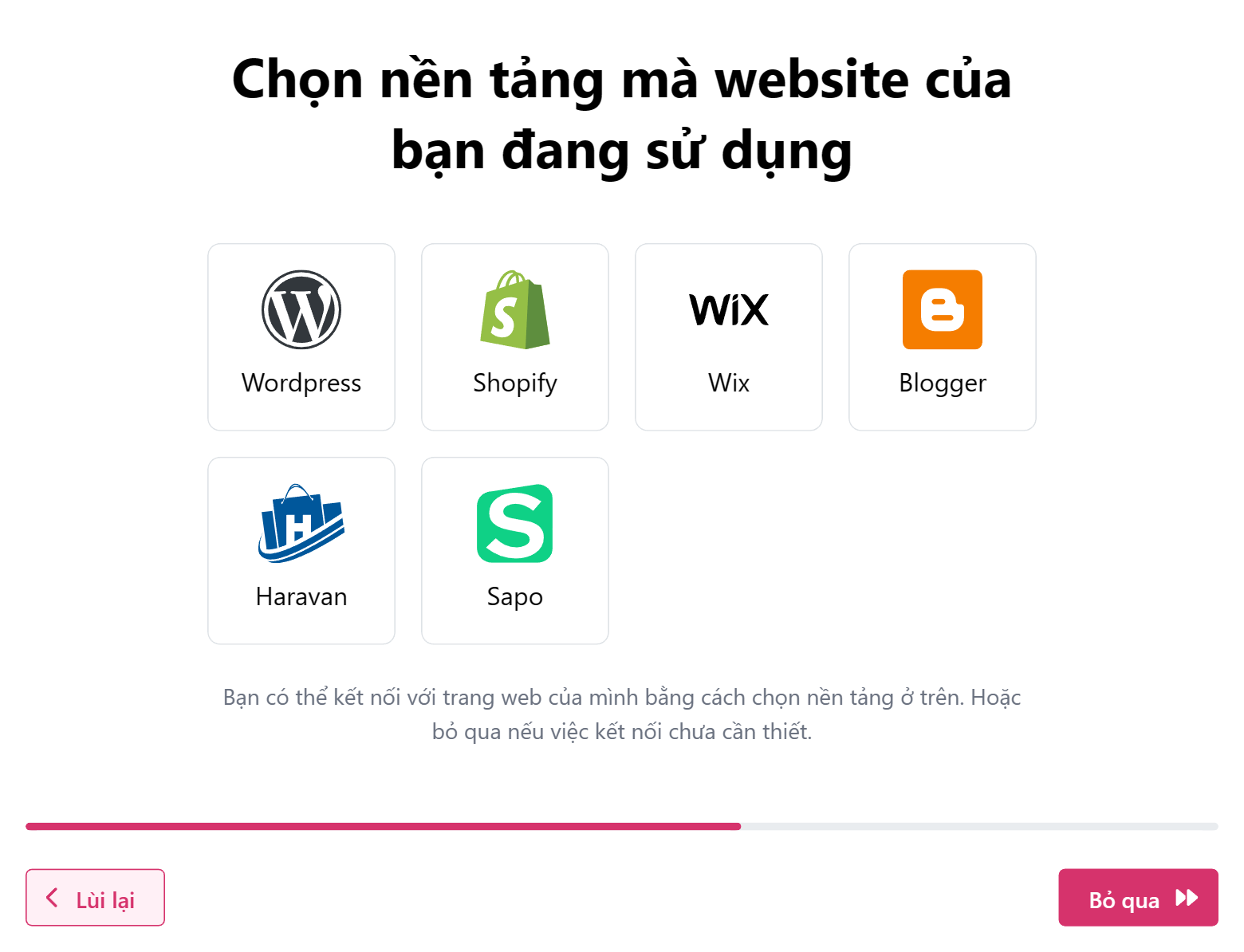 Select Skip if you want to create an unpublished website (a website where you can write and store articles but cannot publish them yet; can connect later).