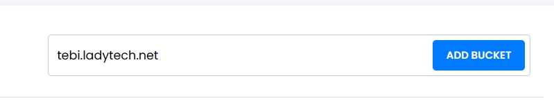 After completing the registration, go to the page: https://client.tebi.io/buckets/. Enter your subdomain as the bucket name and then click Add Bucket.
