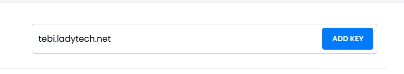 Similarly to the bucket, enter the subdomain here. For example, enter tebi.ladytech.net and then click Add Key.