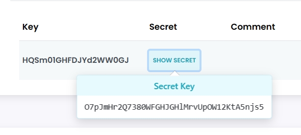 Next, take note of the Key and Secret Key information to prepare for the next step.