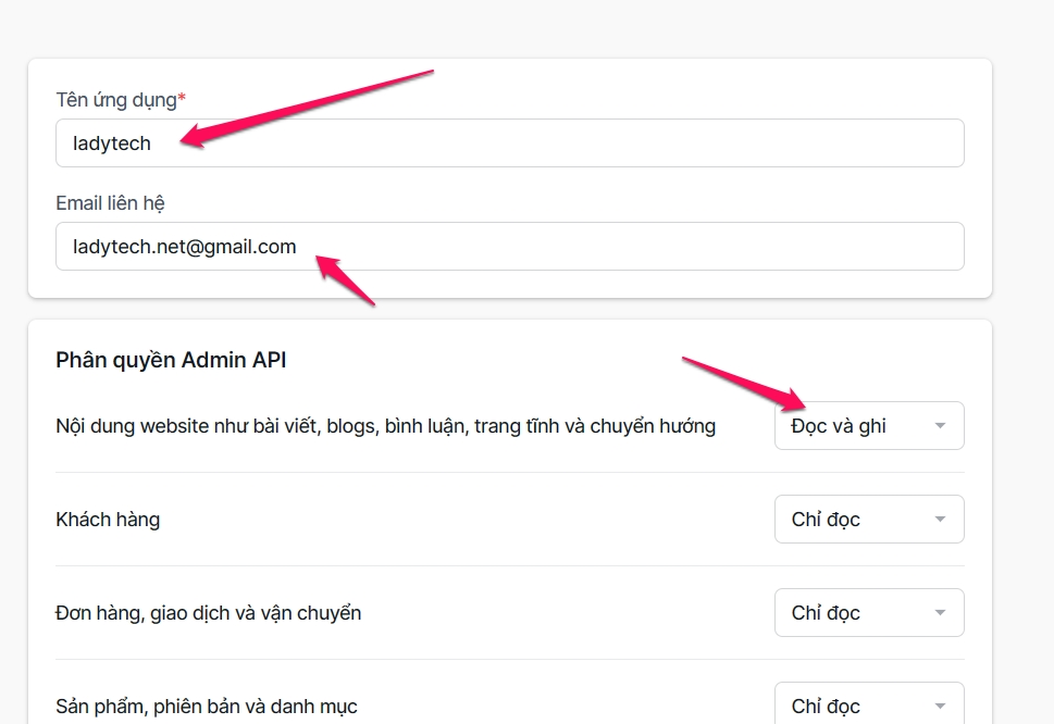 Enter the app name "ladytech" and select the Read and Write permissions.